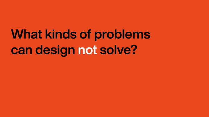 In Design for the Real World, Victor Papanek claimed that “design can reduce pollution, overcrowding, starvation, obsolescence and other modern ills.” From aesthetics to usability, ethics to equity, it's essential to consider what kinds of problems design can solve – and perhaps more significantly, what problems it can't solve. What can designers do? In this brief talk, we explore the boundaries and opportunities of design.